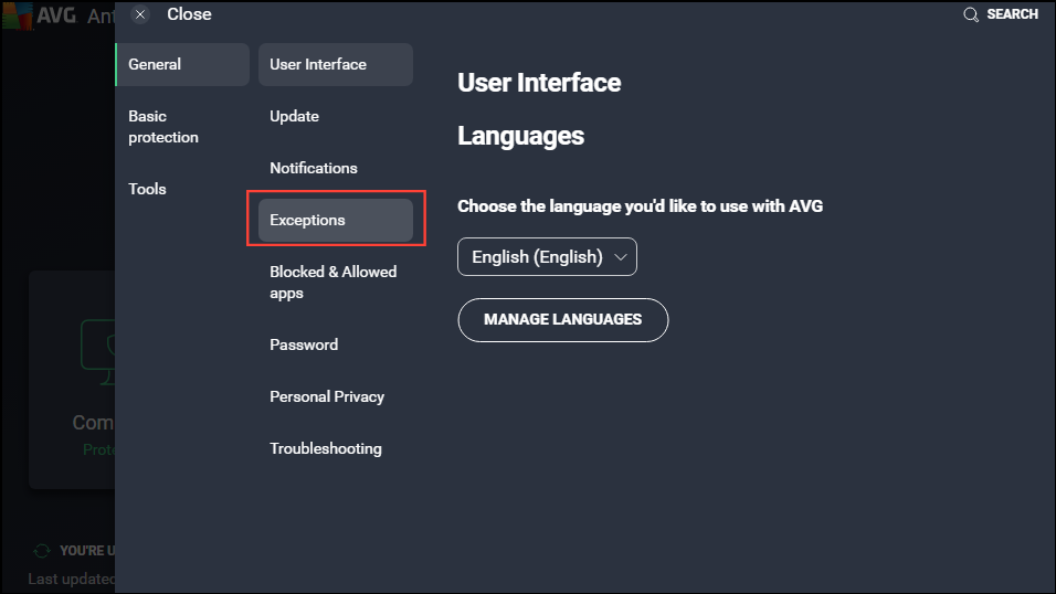 Step 5: Additionally, ensure antivirus software isn't mistakenly blocking the game. Temporarily disabling antivirus software or adding Monster Hunter Wilds as an exception can resolve connection issues. To do that, just open your antivirus program and look for Exclusions or Exceptions in the settings.