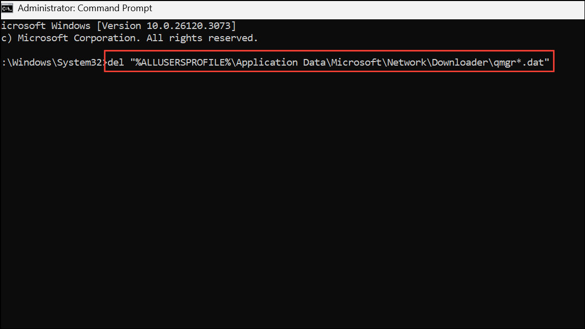 del "%ALLUSERSPROFILE%\Application Data\Microsoft\Network\Downloader\qmgr*.dat"