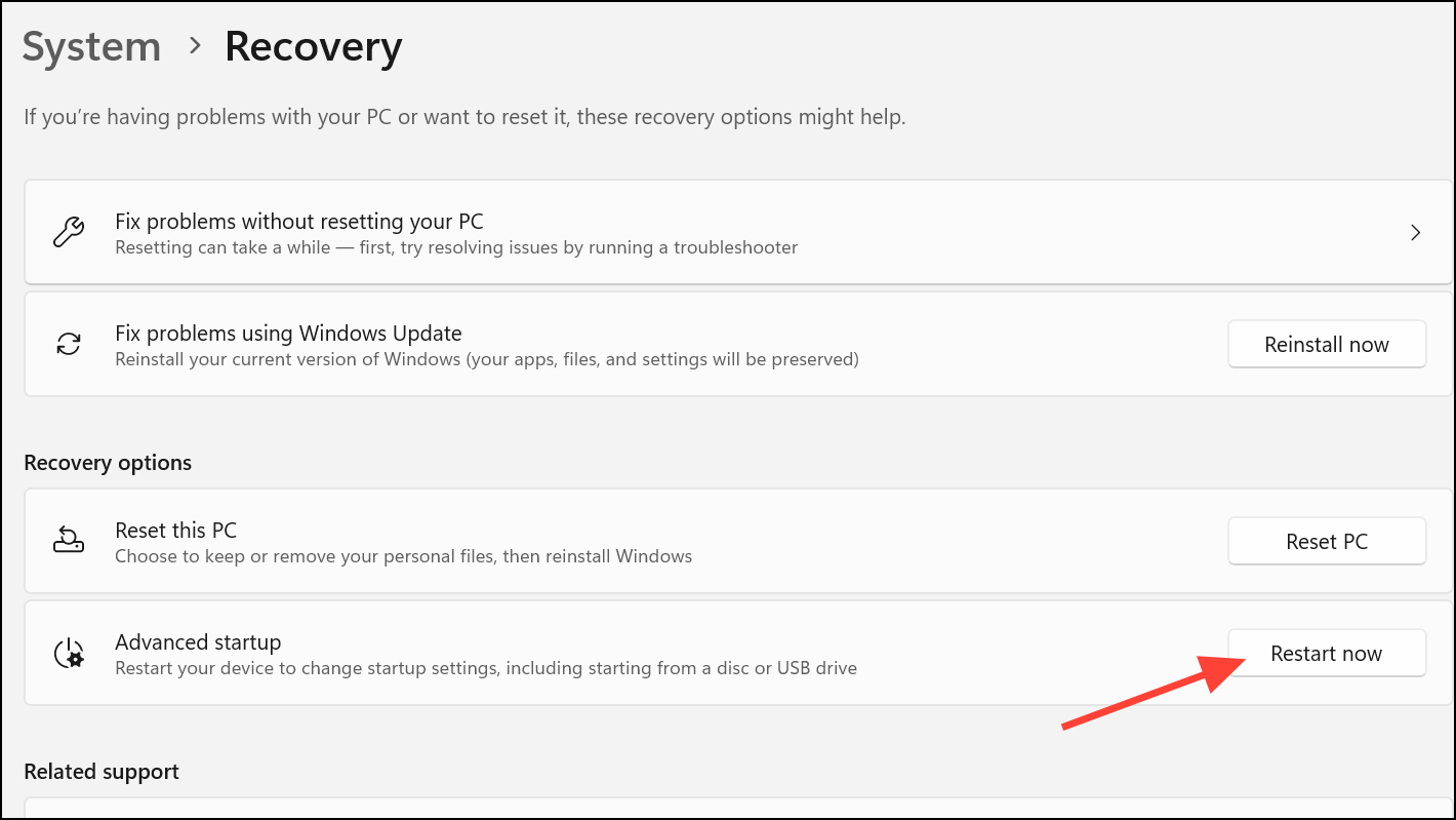 Step 1: Open the Settings app and navigate to System > Recovery.