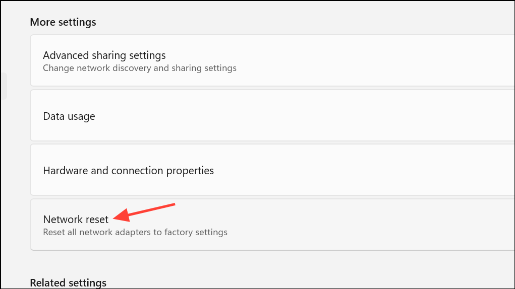 Step 1: As a last resort, reset all network settings. Go to Settings → Network & Internet → Advanced network settings and click Network reset. Confirm and reboot. This process removes and reinstalls all network adapters, resets TCP/IP stack, and clears custom network settings. Note that you’ll need to re-enter Wi-Fi passwords and reconfigure VPNs or static IPs afterward.