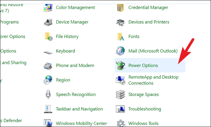 Step 2: Click on 'Power Options'.
