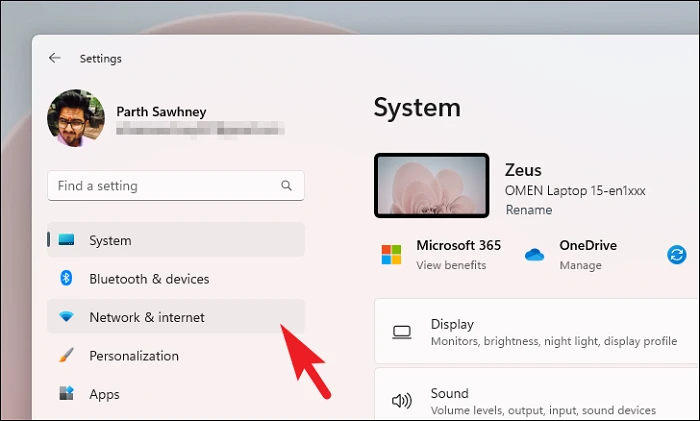 Step 1: Go to 'Settings' and select 'Network & internet' from the left sidebar.
