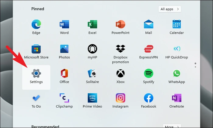 Step 1: Open the Start Menu and select 'Settings'.