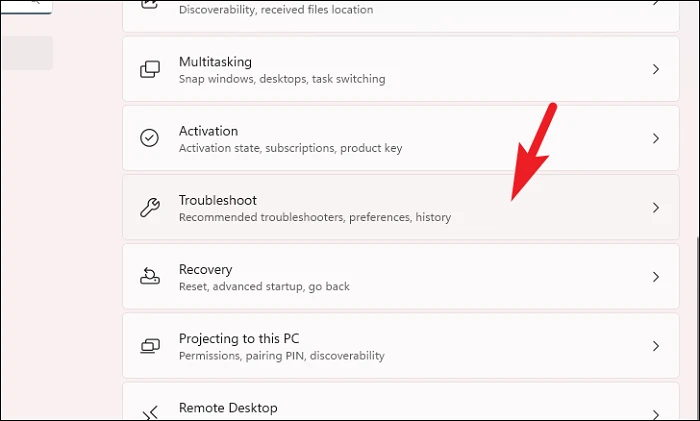 Step 2: Click on 'System' in the left sidebar, then select 'Troubleshoot' on the right.