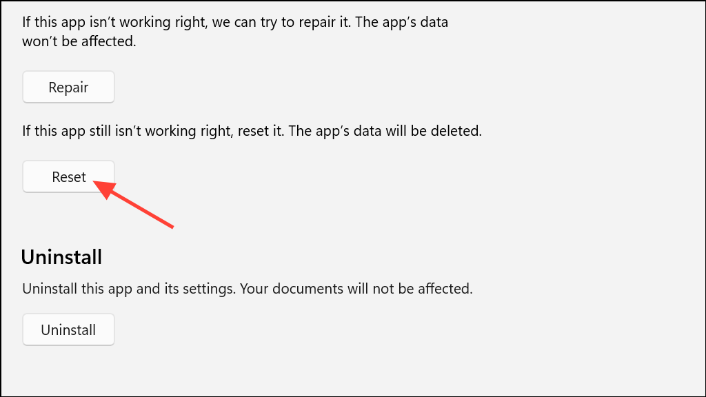 Step 3: In the Advanced options menu, click Reset. Confirm the reset when prompted. This process removes cached data and restores default app settings.