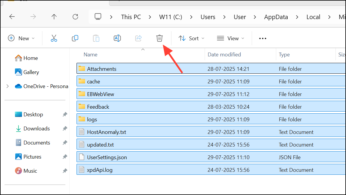 When standard app resets fail, removing specific local data folders forces Outlook to rebuild its configuration and authentication files. This step addresses cases where hidden files are corrupted or stuck.