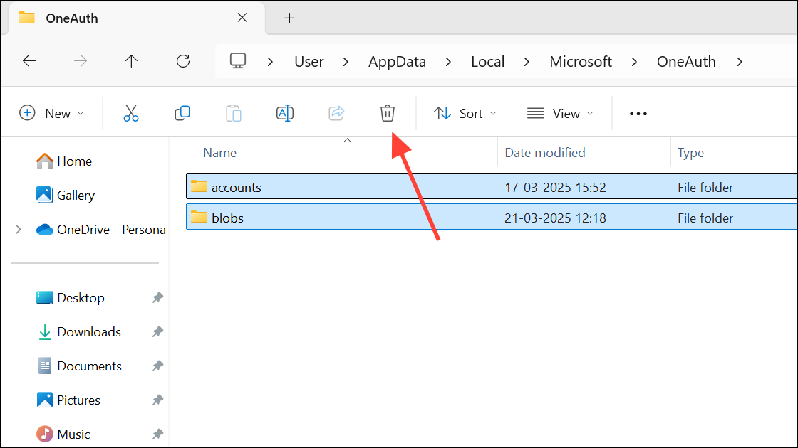 Step 2: Repeat the process for %localappdata%\Microsoft\OneAuth, deleting the OneAuth folder. These folders store cached credentials and local app data.