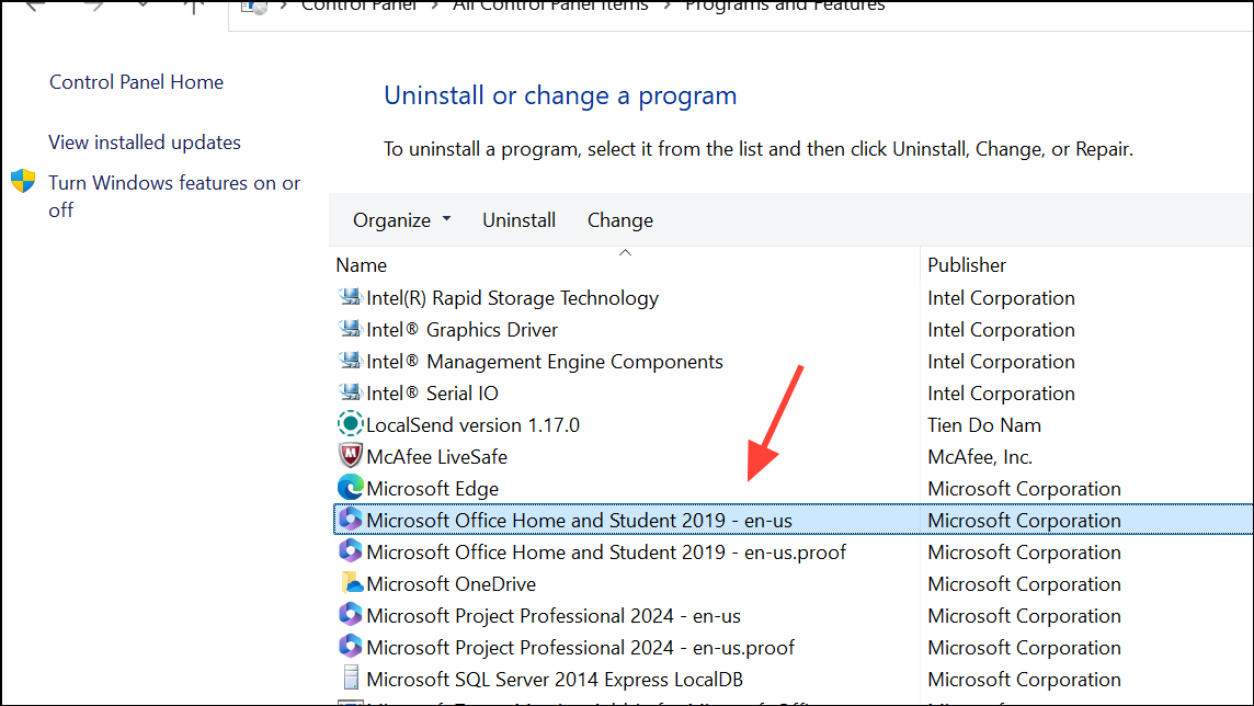 Step 2: Open Control Panel, select Programs and Features, then find Office or Microsoft 365 in the list.
