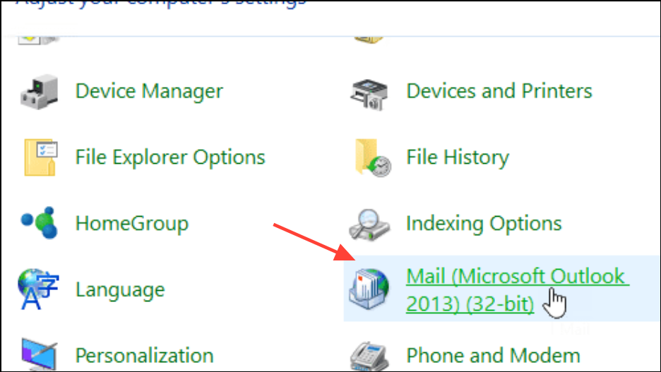 Step 1: Open Control Panel and search for Mail.
