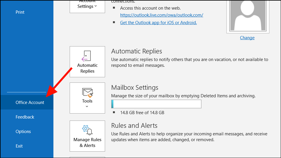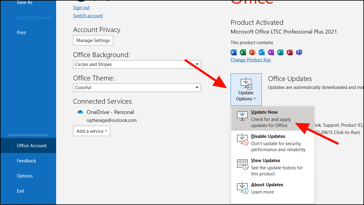 - In the left-sidebar of the File menu, select 'Office Account'.