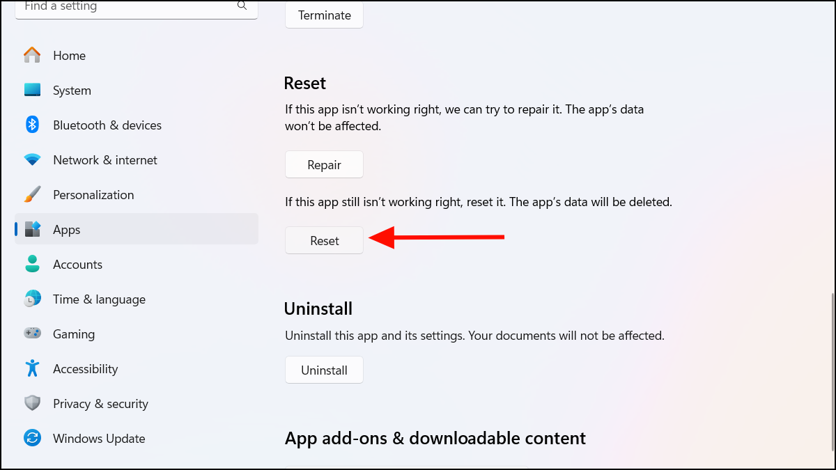 If reinstalling the Teams app doesn't resolve the missing add-in issue, uninstall and reinstall the entire Microsoft Office suite. If you're using the new Outlook app for Windows, uninstall and reinstall the classic Outlook application through the MS Office suite.