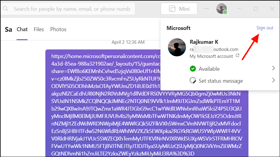 - In the Teams app, click your profile icon and select ‘Sign out’.