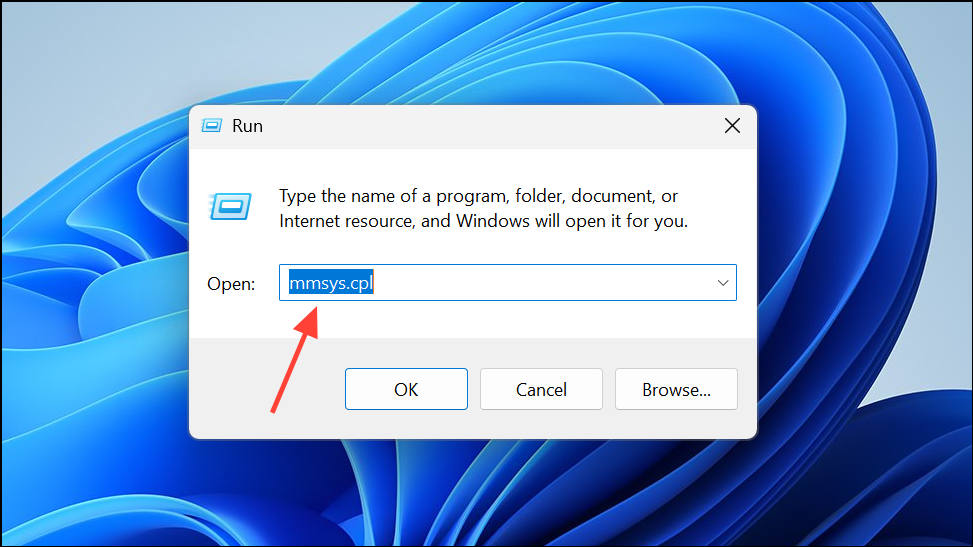 Step 3: For more detailed options, press Windows + R to open the Run dialog, type mmsys.cpl, and press Enter.