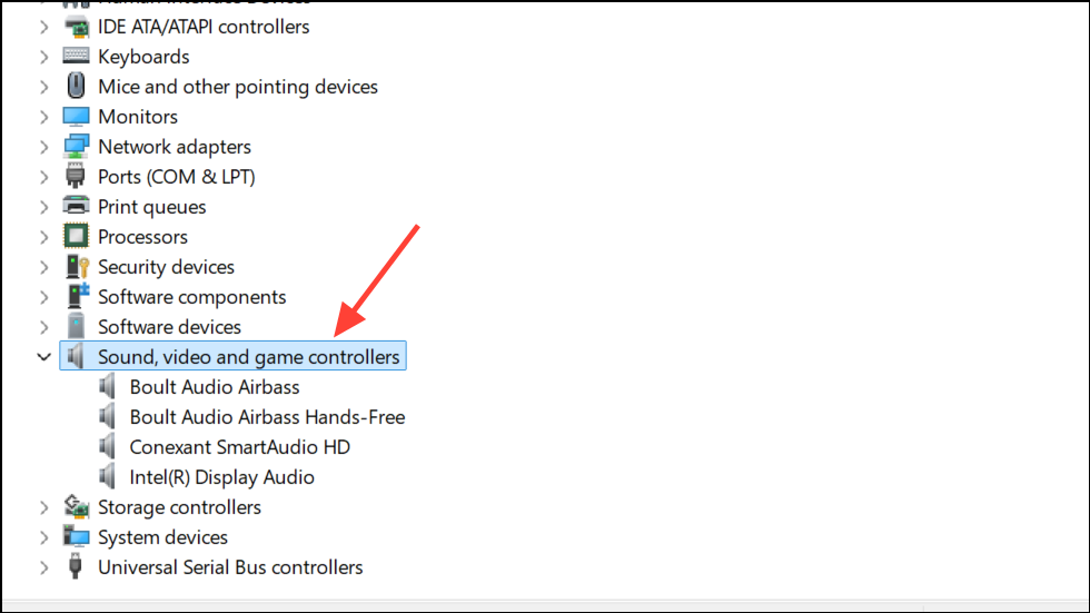 Step 2: Expand the Sound, video, and game controllers section.