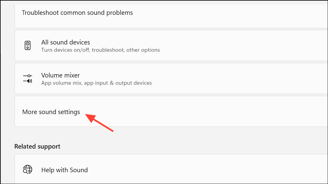 Step 1: Right-click the speaker icon and choose Sound settings. Scroll down the page and select More sound settings.
