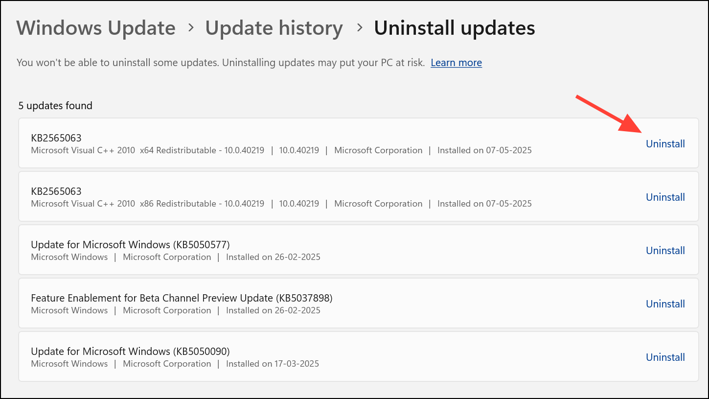 Step 2: Click Uninstall updates, select the most recent update, and click Uninstall. Restart your computer and check if game audio is restored.