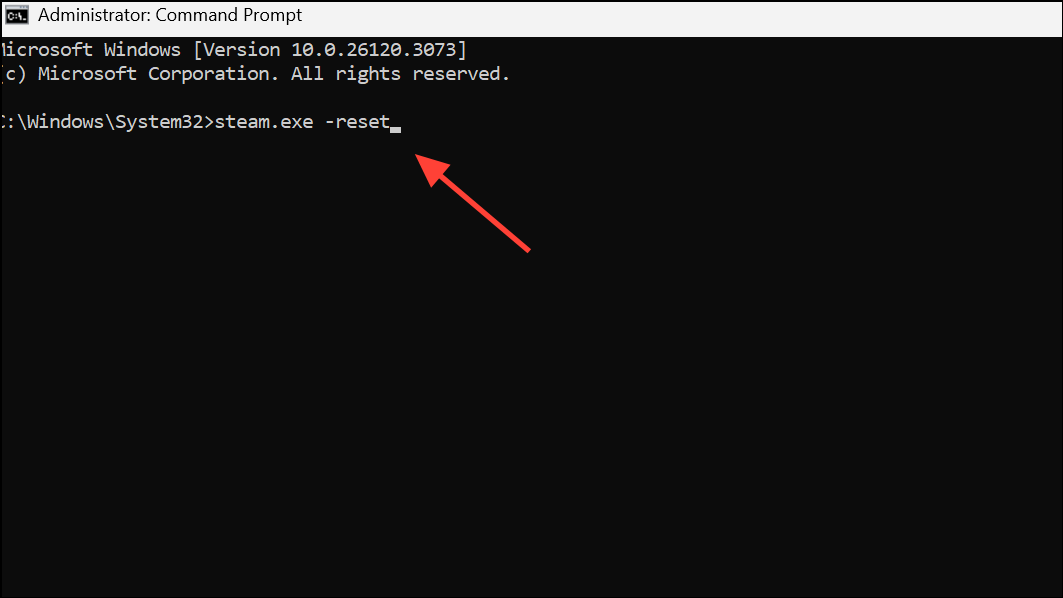 Step 1: To reset Steam, close the client completely, then run it with the -reset flag (for example, steam.exe -reset from a command prompt or shortcut). This refreshes Steam’s configuration files.