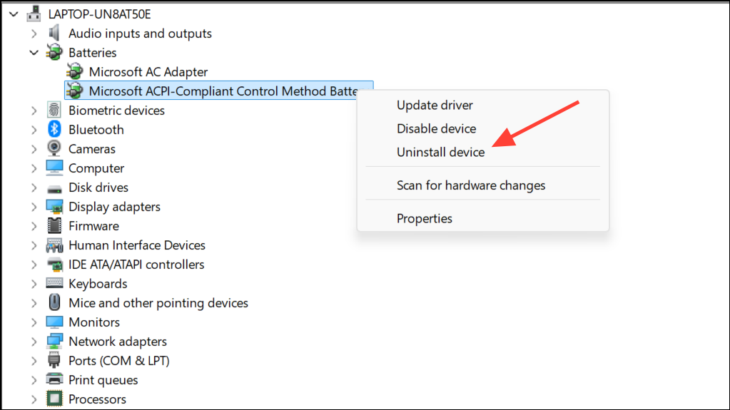 Step 4: Right-click the battery device again, select Uninstall device, and confirm. Restart your computer—Windows will reinstall the driver automatically. This often resolves notification glitches caused by driver corruption.