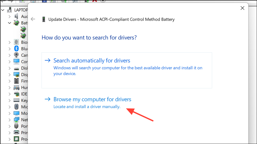 Step 5: If you have more than one battery device listed, repeat for each. For some laptops, choosing an older driver version via Browse my computer for drivers and Let me pick from a list of available drivers can restore expected battery behavior.