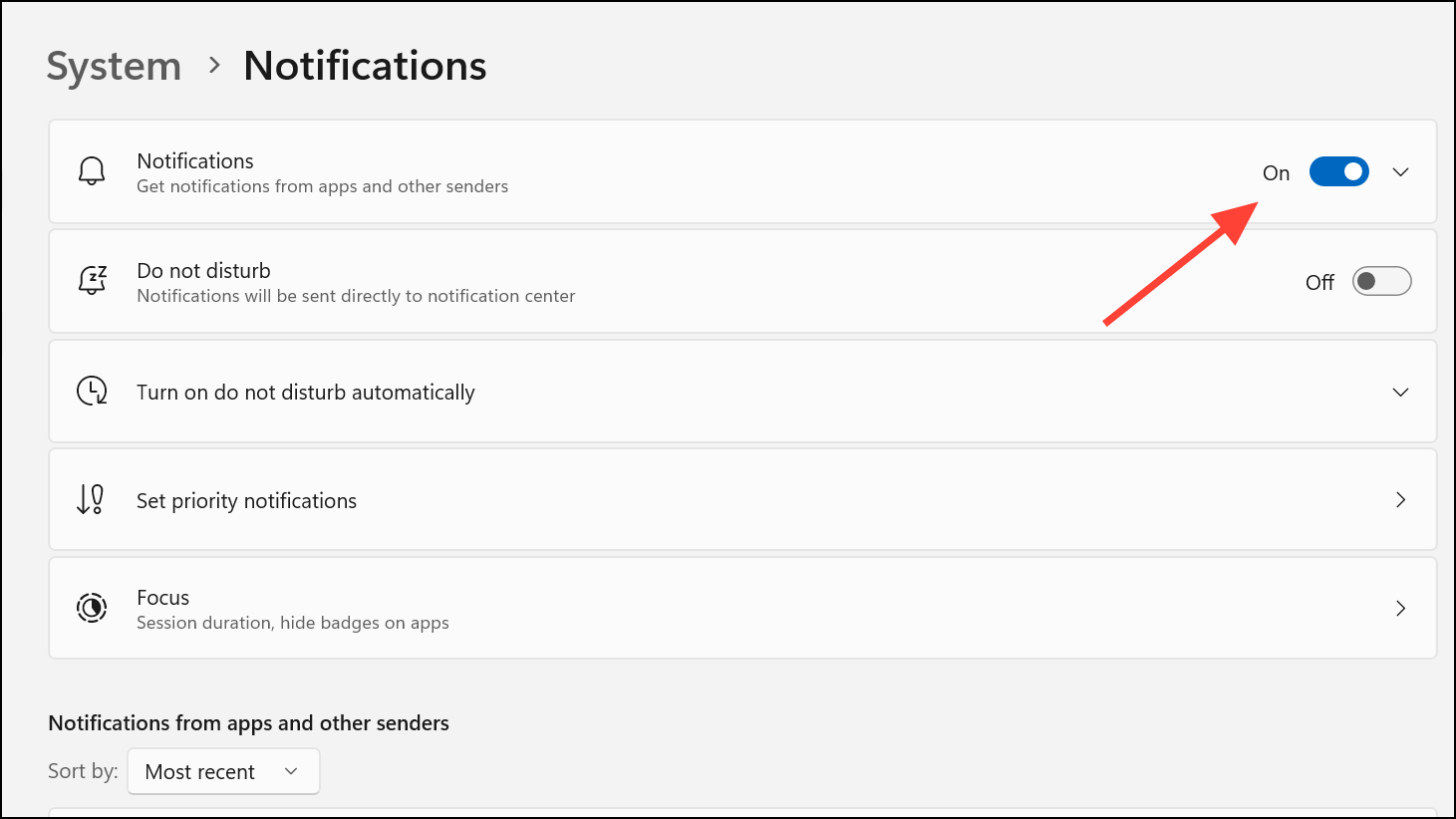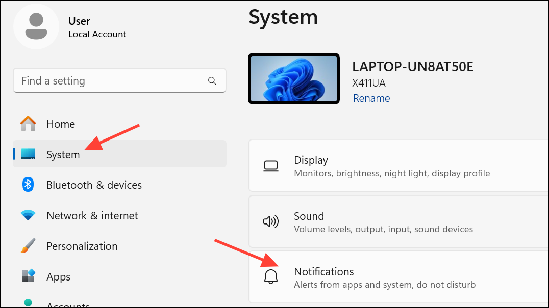 Step 1: Open the Settings app using Win + I. In the left menu, select System, then choose Notifications.