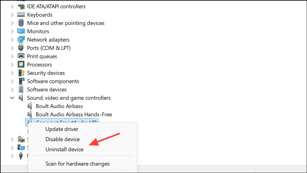 Step 4: If no updates are found, right-click the device again and select Uninstall device. Confirm and restart your computer. Windows will attempt to reinstall the correct driver automatically on reboot.