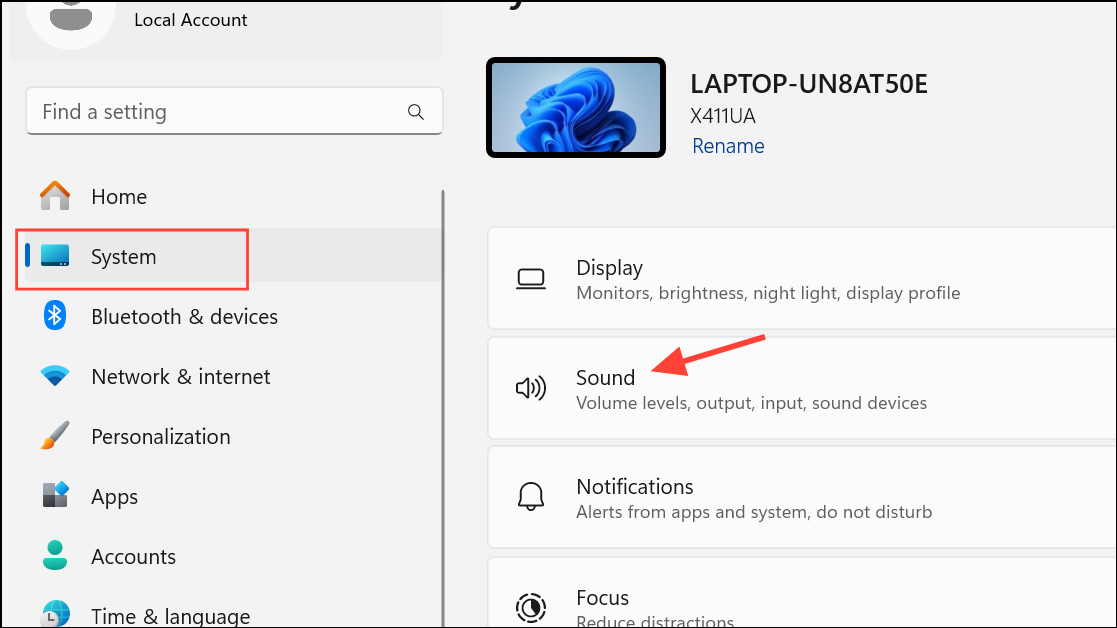 Step 1: Go to Settings > System > Sound.
