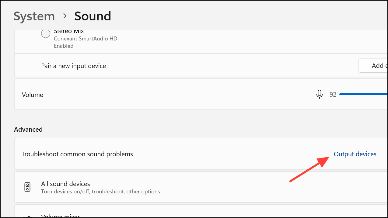 Step 2: Scroll to Troubleshoot common sound problems and select Troubleshoot next to your output device. Follow the on-screen instructions.