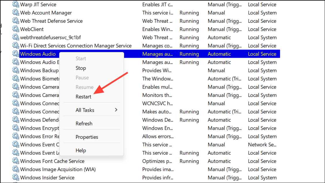 Restart Audio Services