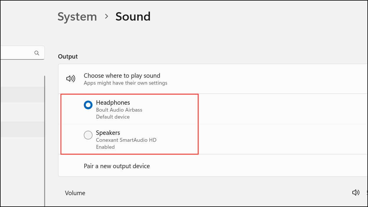 Step 1: Open Settings > System > Sound and select your output device.