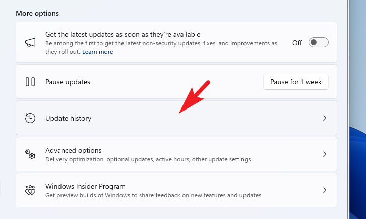 Step 1: From the 'Windows Update' settings, click on 'Update history'.