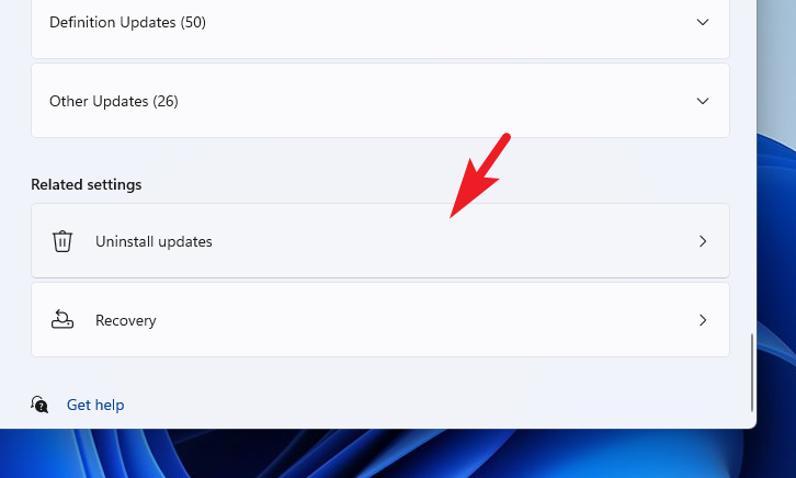 Step 2: Scroll down and click on 'Uninstall updates'.