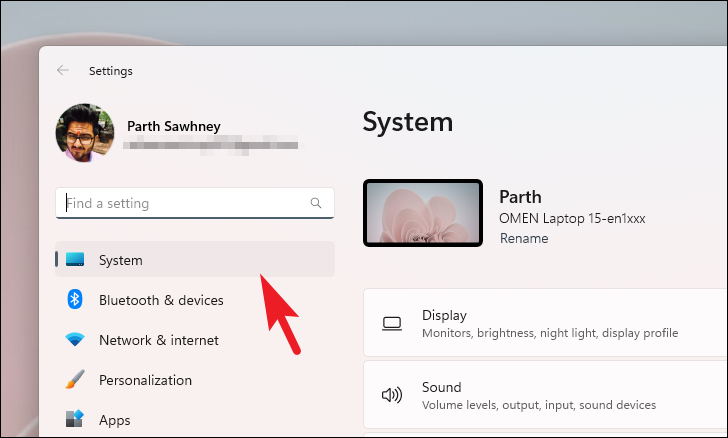Step 2: Click on the 'System' tab on the left sidebar, then select 'Troubleshoot' on the right pane.