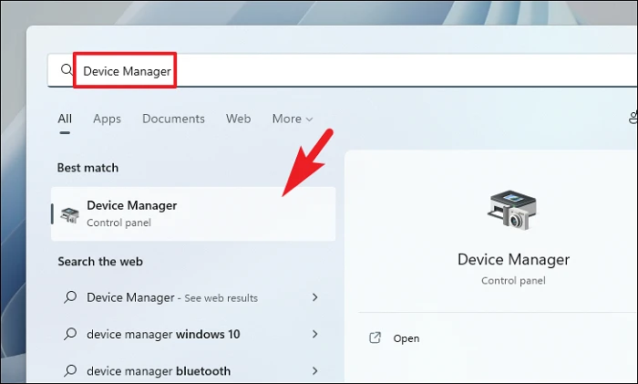 Step 1: Open the Start Menu and type Device Manager. Click on the 'Device Manager' app.