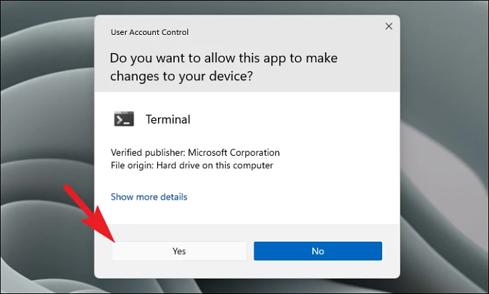 Step 2: If prompted by User Account Control (UAC), click 'Yes' to allow administrative privileges.