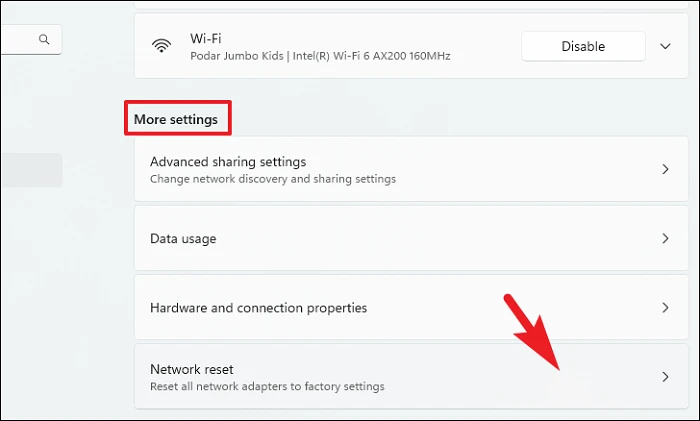 Step 2: Click on 'Advanced network settings' on the right pane.