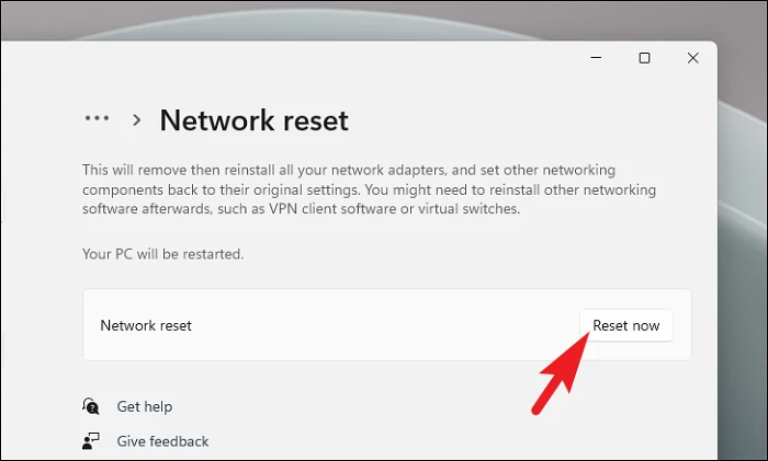 Step 4: Click on 'Reset now'. Your PC will restart to complete the process.