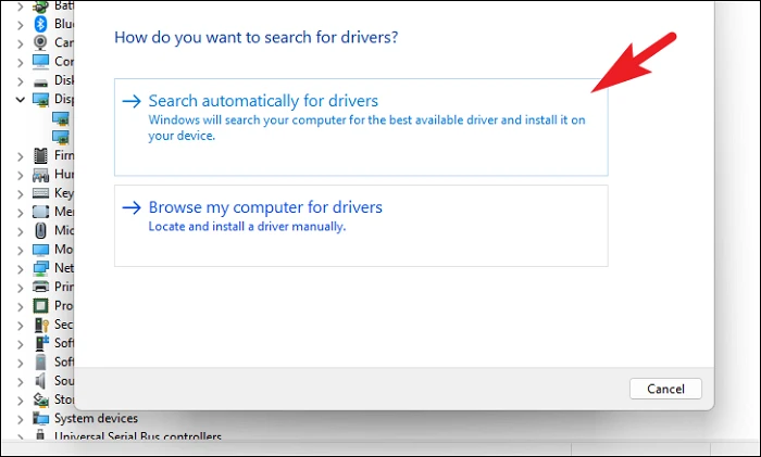 Step 4: Choose 'Search automatically for drivers' to let Windows find and install the latest driver. If you have downloaded the driver manually, select 'Browse my computer for drivers' and navigate to the driver file.