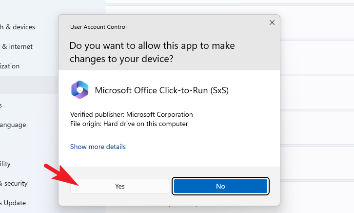 Step 5: A User Account Control (UAC) prompt will appear. If you're logged in as an administrator, click Yes. Otherwise, enter the administrator credentials.