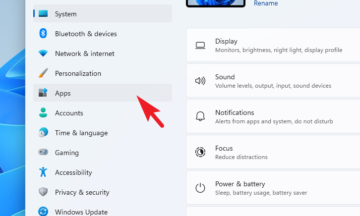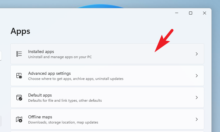 Step 2: In the Settings window, click on the Apps option from the left sidebar.