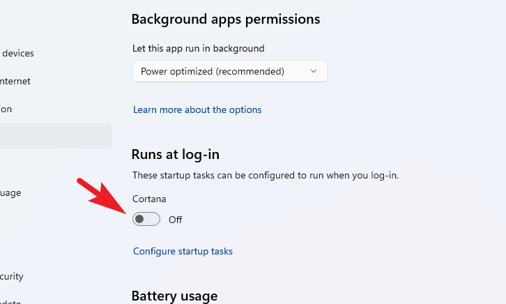 Step 6: Scroll down and click on Terminate to stop Cortana from running.