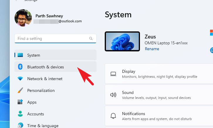 Step 2: Click on Bluetooth & devices from the left sidebar.