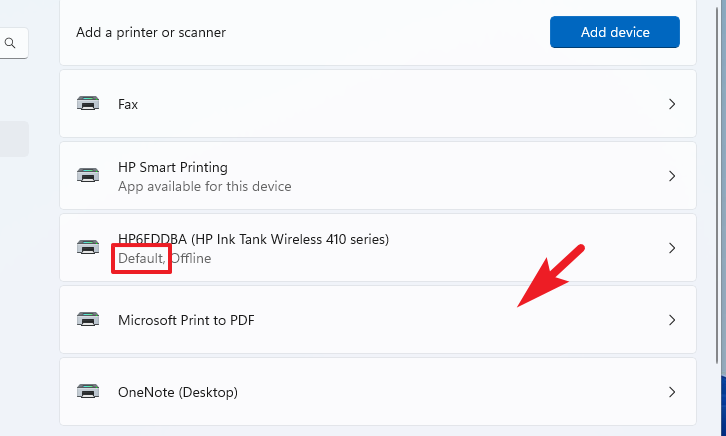 Step 4: Locate your default printer and choose a different one by clicking on it.