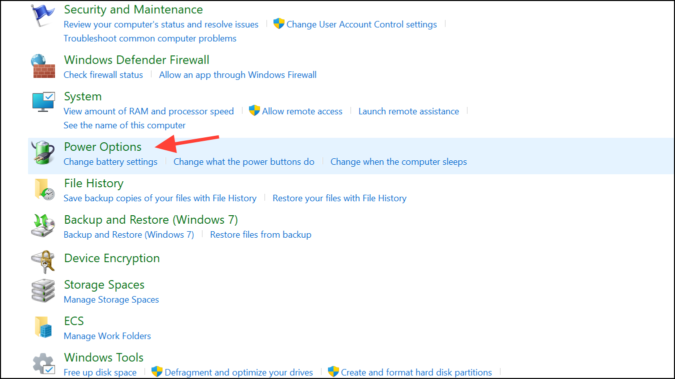 Step 2: Press Win + R, type control panel, and press Enter. In the Control Panel, go to "System and Security" > "Power Options."