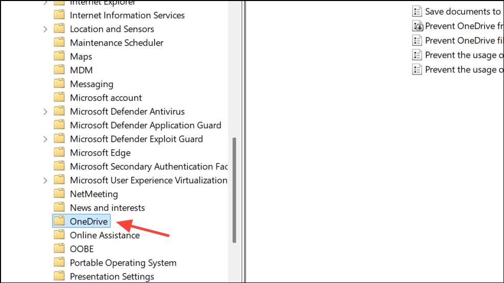 Step 2: In the Local Group Policy Editor, navigate to Computer Configuration > Administrative Templates > Windows Components > OneDrive.