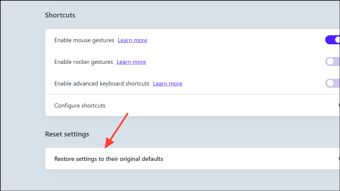 Step 1: Open Opera and go to Menu > Browser > Reset settings to their original defaults. Choose “Keep my data and only reset Opera settings” to revert settings, disable extensions, and clear temporary data without deleting bookmarks, history, or passwords.