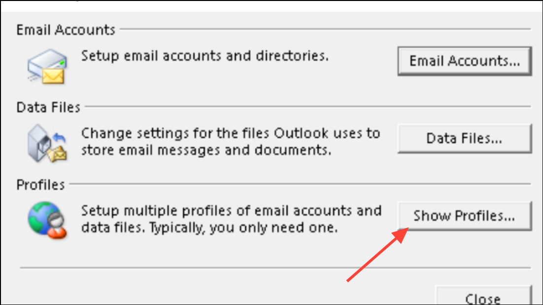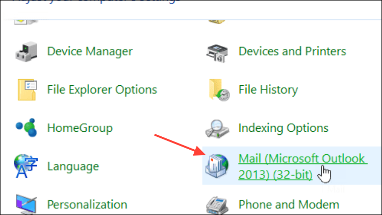 Step 1: Open the Control Panel and select Mail (may appear as Mail (Microsoft Outlook 20XX)).