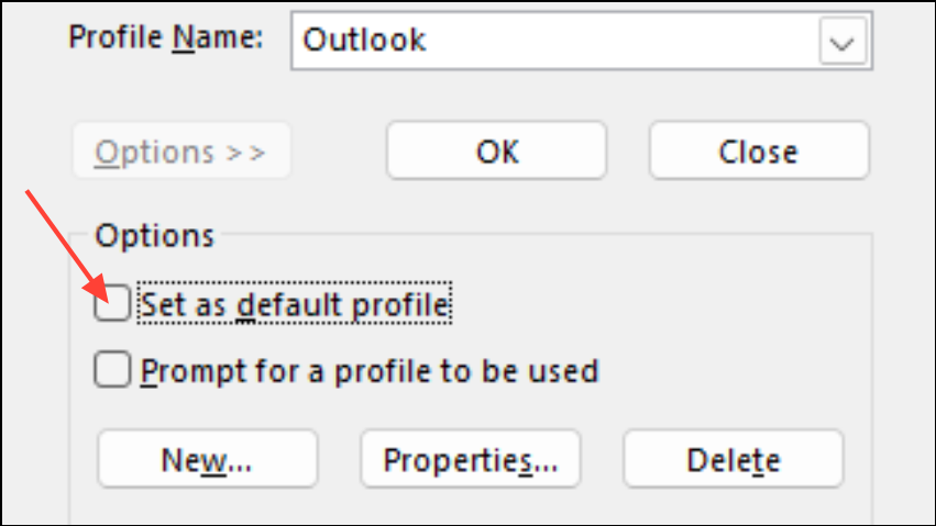 Step 4: Set the new profile as the default and launch Outlook. Outlook will create a new OST file and synchronize mailbox data.
