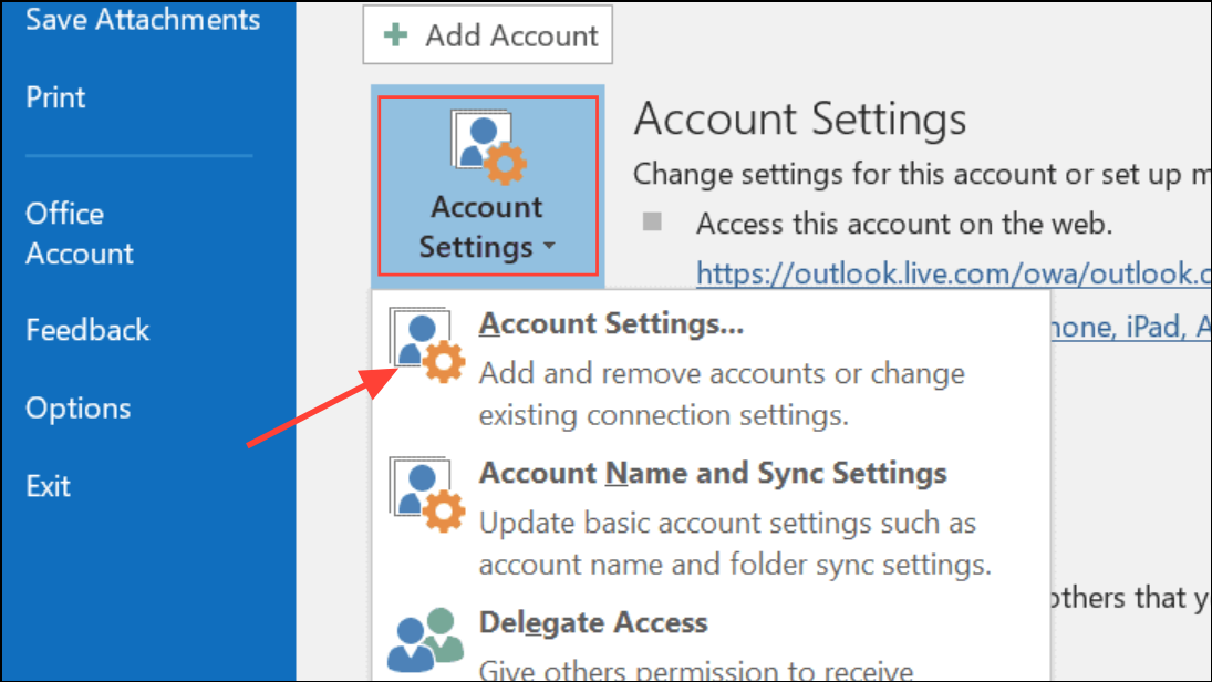 Step 1: Open Outlook and navigate to File > Account Settings > Account Settings. Select your email account and click Change.
