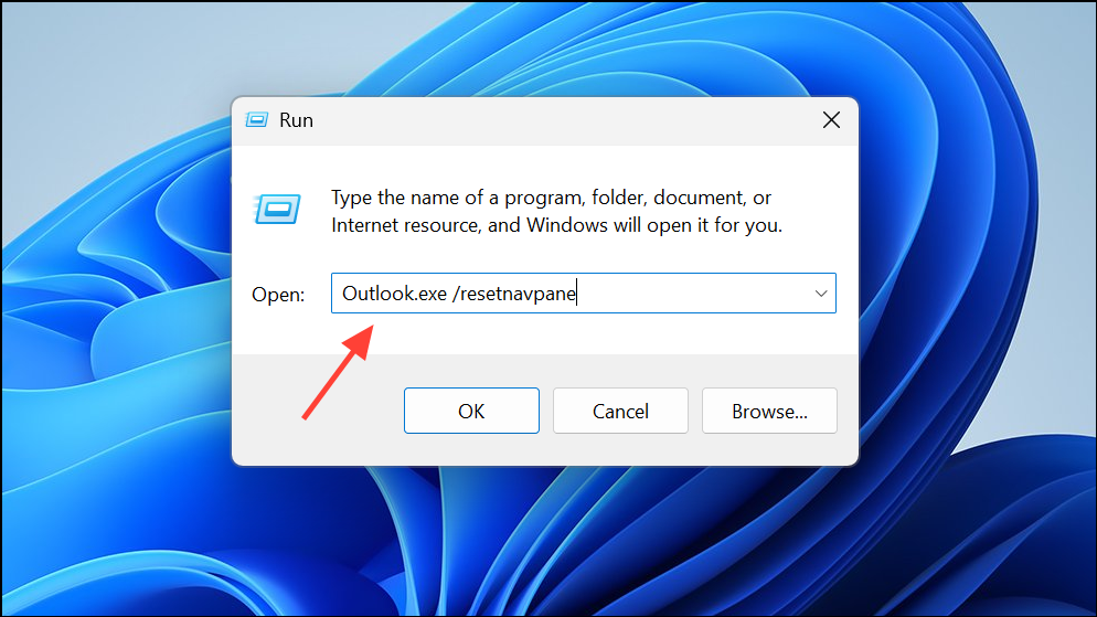 Step 2: Enter Outlook.exe /resetnavpane and press Enter. This command clears customizations in the navigation pane, which can unblock Outlook startup.