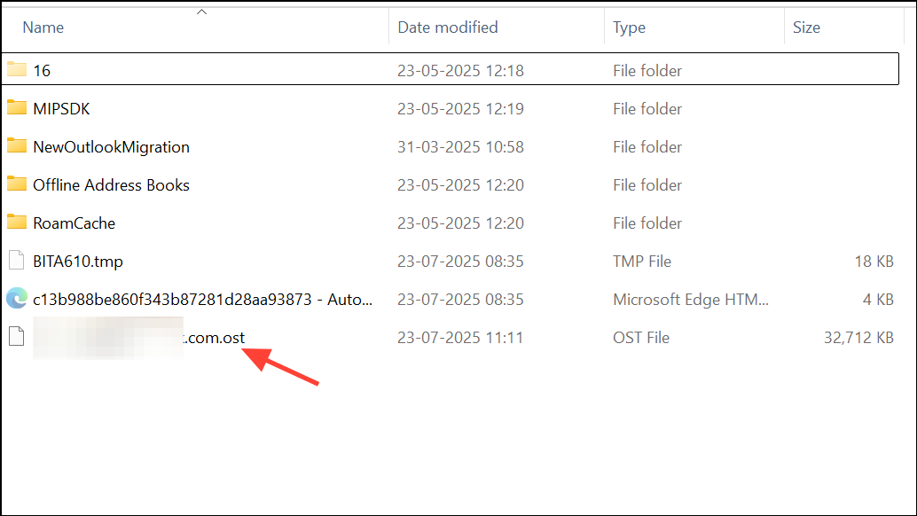 Step 3: Find the OST file associated with your email account. Move it to another folder as a backup, or delete it if you’re certain your mail is stored on the server.